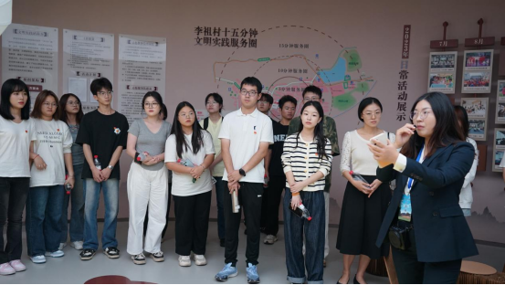 一路调研,一路思索,全体党员先后在村党群服务中心、“共富市集”、扎染商铺等场所了解李祖村发展变化情况。李祖村抓住“千村示范、万村整治”工程的契机,改善乡村人居环境、积极引资投资、挖掘乡村特色,打造一批观光旅游项目,以文旅融合促进共同富裕,让村民在“家门口”实现增收致富的乡村振兴路径,展现出了“千万工程”的强大生命力,诠释了中国式现代化“促进全体人民共同富裕”的内涵。李祖村就是浙江“千万工程”显著成效的一个缩影,从改善农村人居环境的小切口入手,各类创业主体纷纷进驻,乡村旅游红火起来,被评为全国文明村。