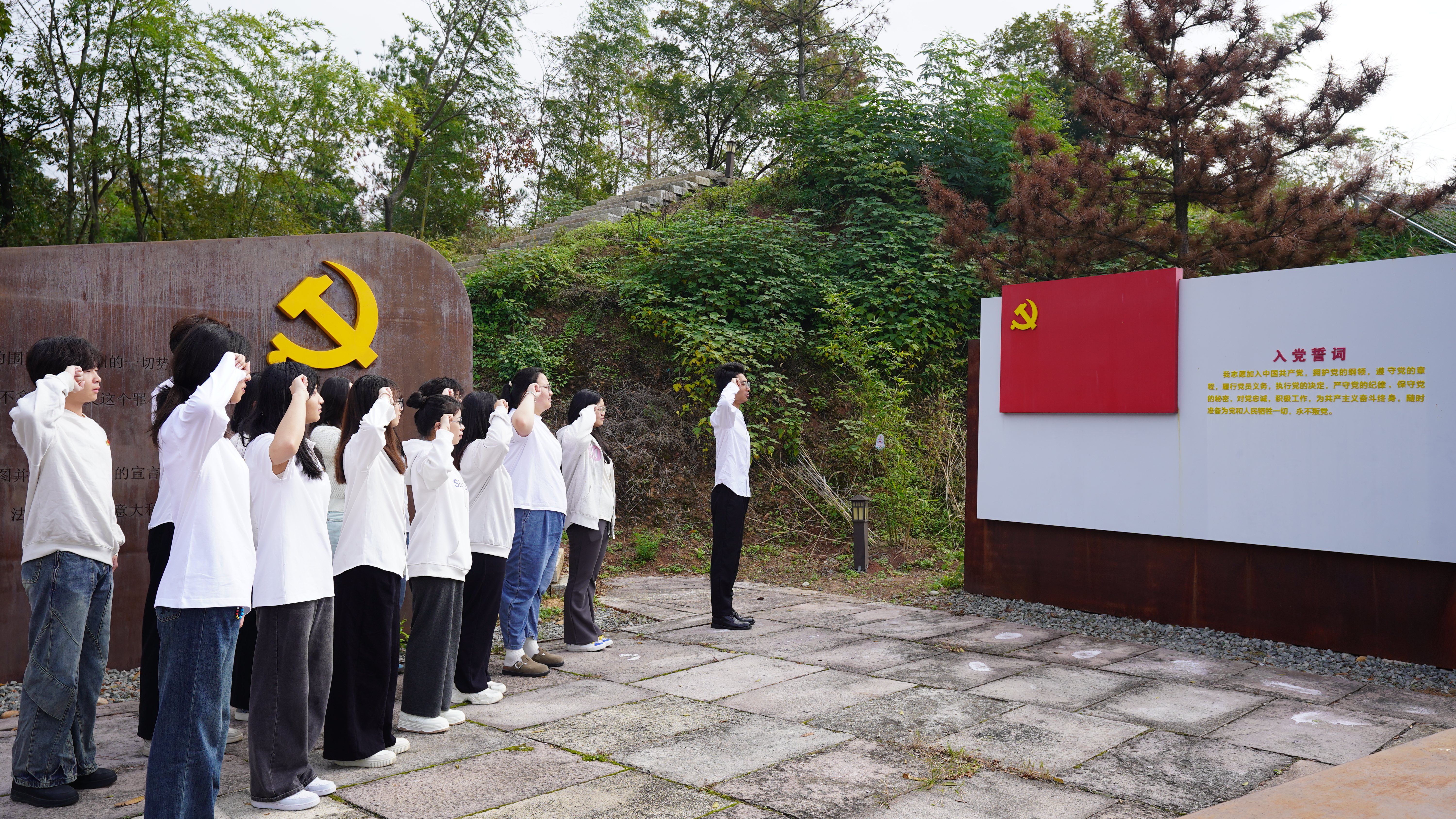 随后,学生预备党员前往陈望道故居宣誓台,在了解《共产党宣言》的相关内容之后,所有学生预备党员面朝鲜红党旗,举起右手,郑重地进行入党宣誓。每一句誓言都铿锵有力,每一个字都饱含深情,展现了他们对党的无限忠诚和对共产主义事业的坚定信仰。