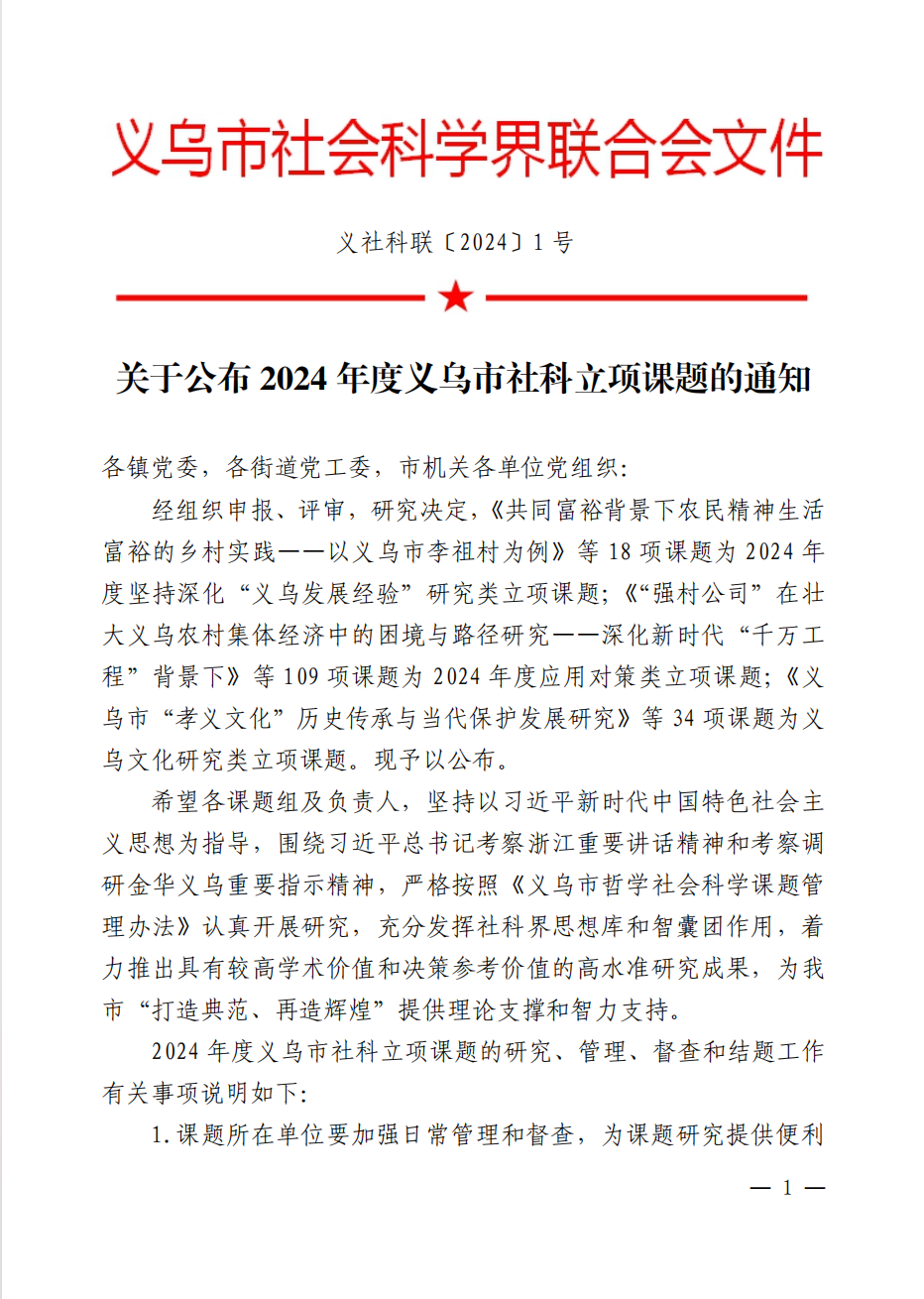 【立项通知】万象城allwincity官网成功立项2024年度义乌市社科课题15项