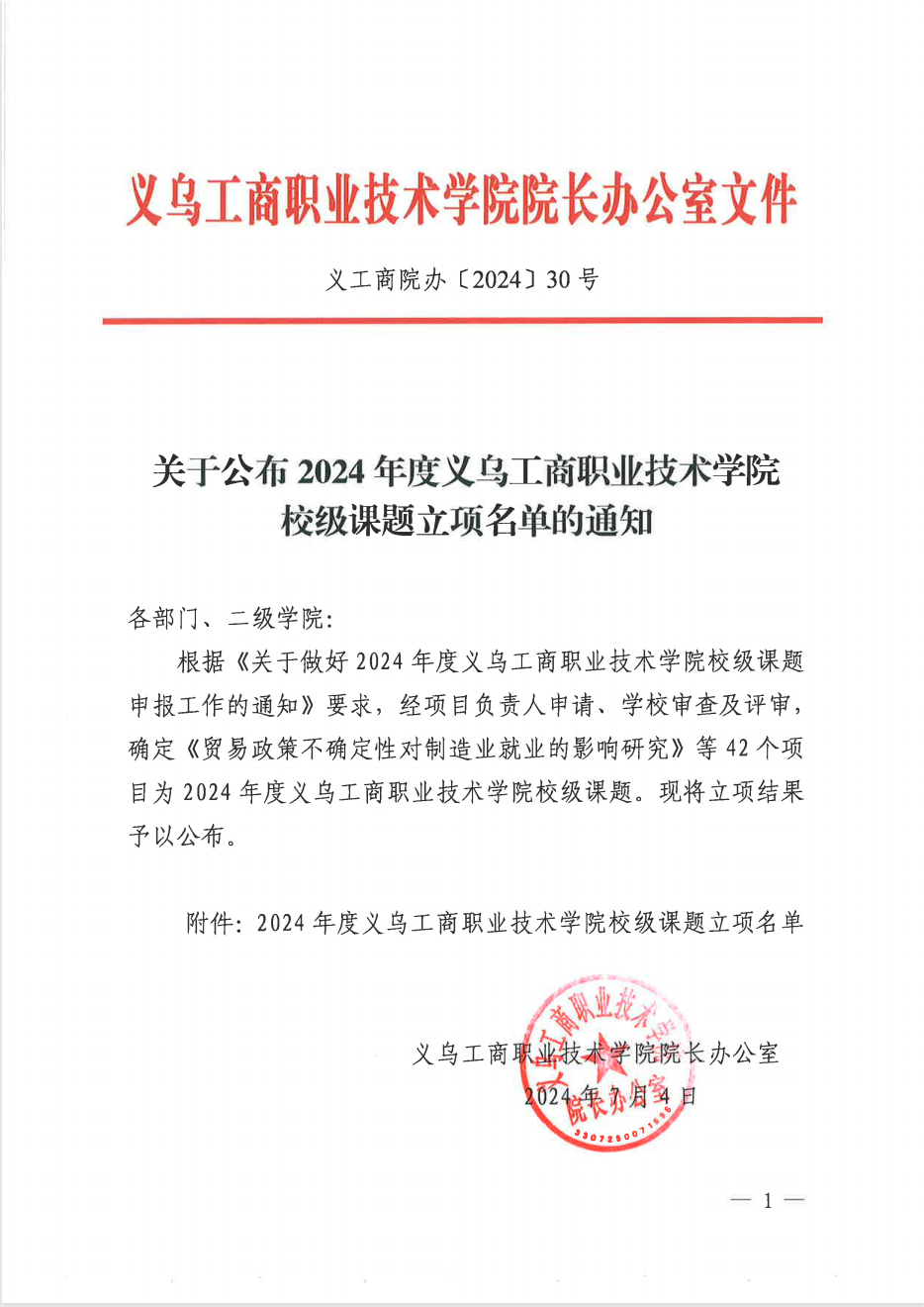【立项通知】万象城allwincity官网成功立项2024年度义乌工商职业技术学院校级课题4项