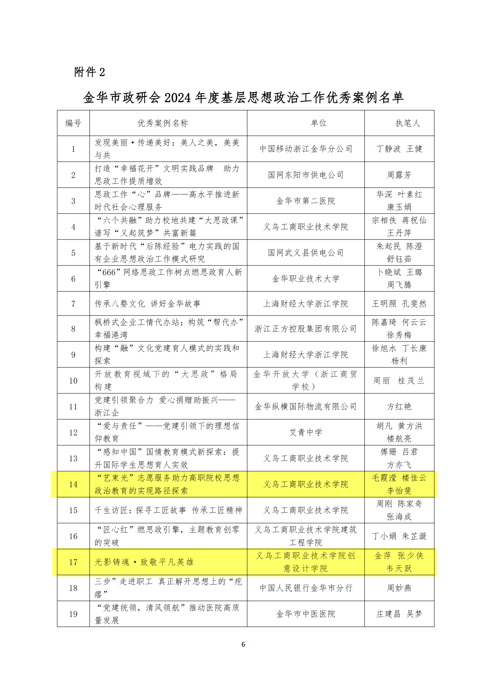 【获奖通知】万象城官网两项基层思政工作案例获金华市政研会2024年度基层思想政治工作优秀案例表彰