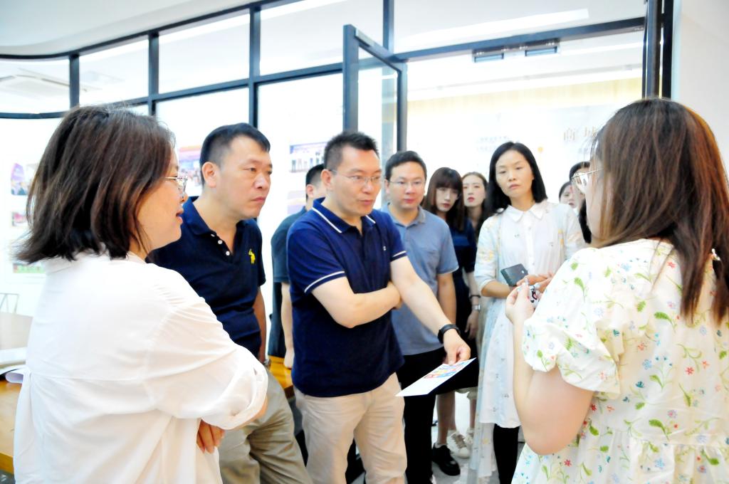 在当天的交流活动中,复旦大学管理学院教授戴伟辉、复旦大学义乌研究院全球传播全媒体研究中心张殿元教授、项目部主管俞龙飞、全球传播全媒体研究中心博士后陈波、郭雅静等15人先后参观了义乌市创意园、国家旅游商品研发中心、国家林产品创意研发中心及园区代表企业,万象城allwincity官网重点介绍了不同学生在创意园的实习实践和他们在设计与新媒体传播领域的突出表现,以及现代学徒制的发展情况。