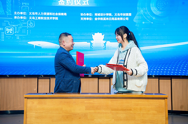 路演结束后,“义乌文创冰箱贴”和“AI智能健康监测镜”两个项目凭借其出色的创意和实用价值,成功吸引了义乌福韵科技有限公司和义乌桃溪米新材料有限公司的青睐,并现场签署了项目落地协议。随后,大赛获奖名单正式揭晓,并由现场的嘉宾和领导为获奖者颁发了荣誉奖项。