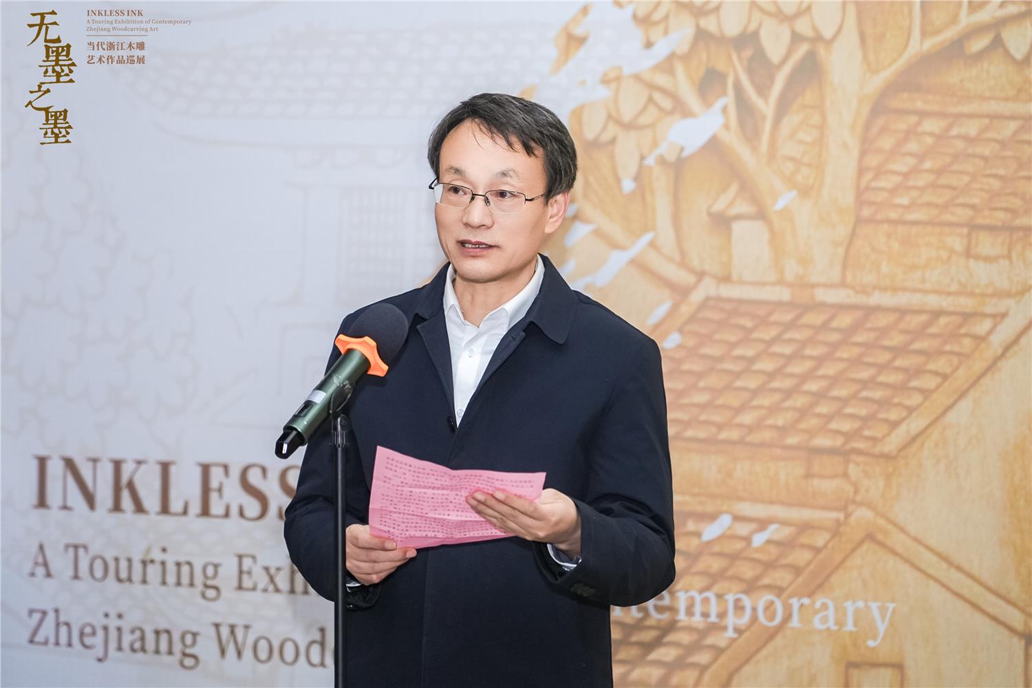 在开幕式致辞环节,义乌工商职业技术学院党委书记李昌祖表示,作为唯一一所植根全球“小商品之都”的高等职业院校,义乌工商职业技术学院始终将服务区域发展、传承创新优秀文化视为重要职责。他指出,本次“无墨之墨”展览正是对古老技艺进行创造性转化的生动诠释,是以木为纸、以刀为笔的艺术诗篇,期待艺术家们恪守“匠心”、勇闯“创新”,以精品力作讲述浙江故事、中国故事。