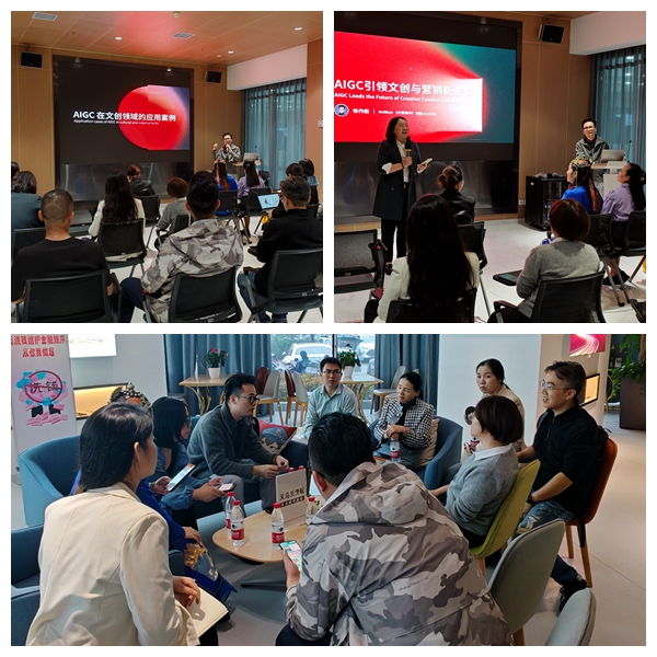 活动上,清华大学硕士、Nolibox(计算美学)创始人徐作彪先生,就人工智能时代产品开发及营销的机遇与挑战、AIGC在文创及营销领域的应用案例、产品开发如何抓住智能设计的机遇、AI赋能设计普惠等内容进行了主题分享,并与现场观众进行了探讨与交流,引发了大家的共鸣。现场气氛热烈。